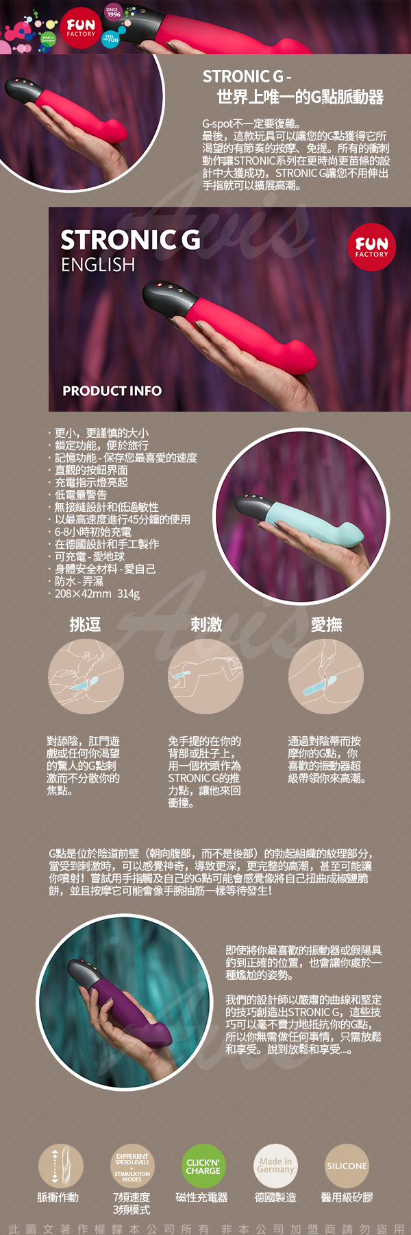.主商品:德國Fun Factory STRONIC G 神鬼戰士G 強力深度抽送擬真按摩棒-紅 充電式