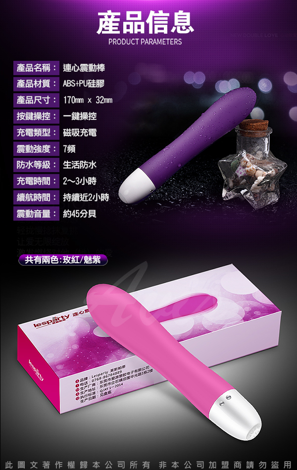 .主商品:連心 7頻震動 激情震動按摩棒 USB 磁吸式充電