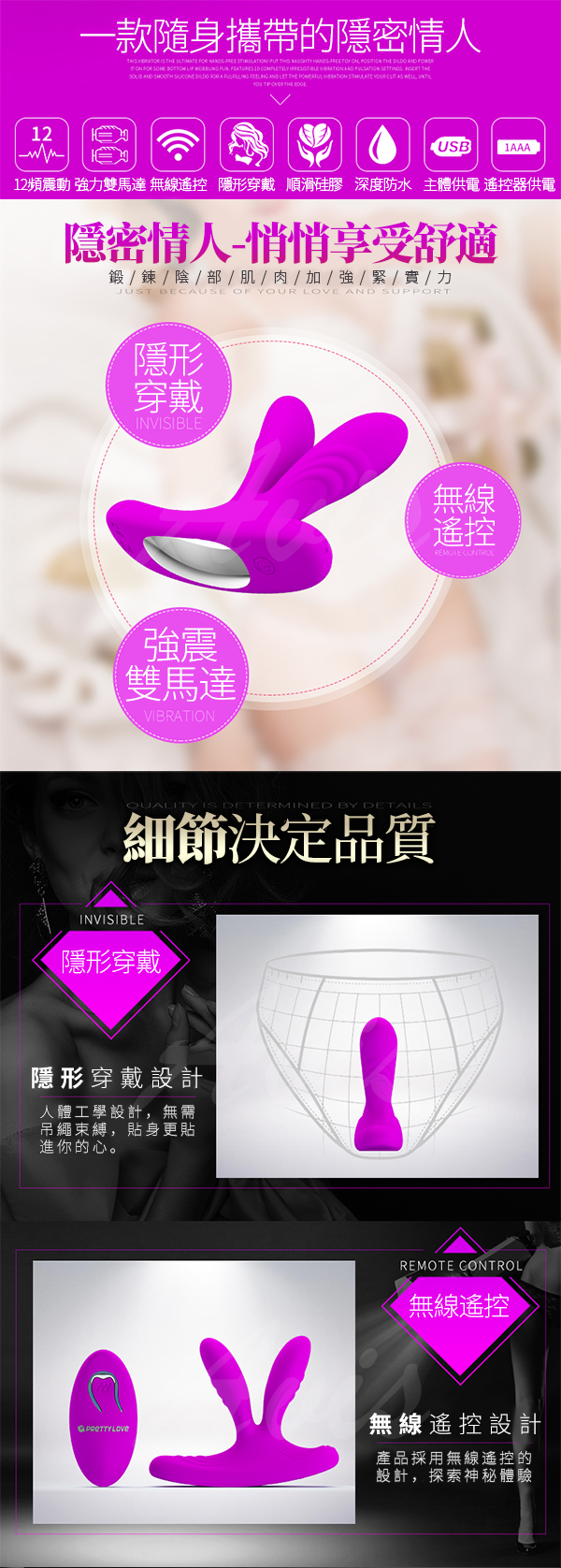 .商品名稱:PRETTY LOVE-Magic Fingers 隱密情人 無線遙控雙激震多功能按摩器 動感開叉款