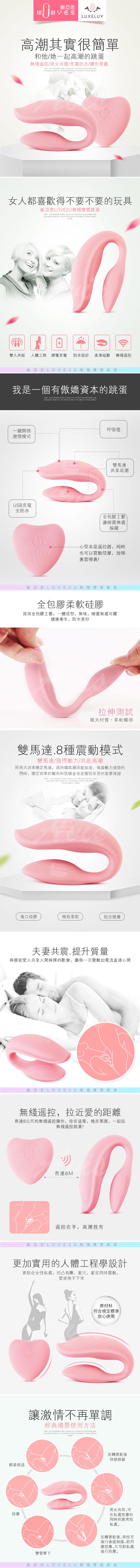 WOWYES LOVE 2U 8段變頻 無線遙控情侶共振器 粉