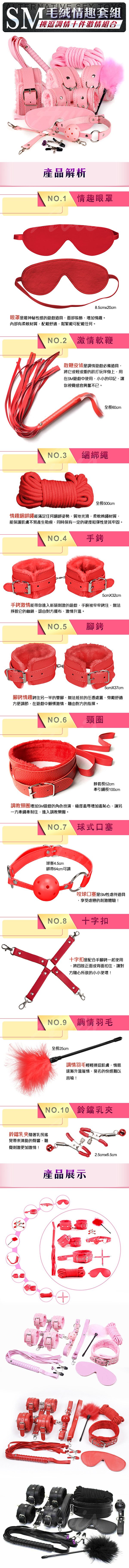.商品內容:虐戀精品CICILY-無禁的愛 手銬/腳銬/繩子/鞭子/眼罩/脖子套/口塞/乳夾/羽毛/十字扣 十件組 粉