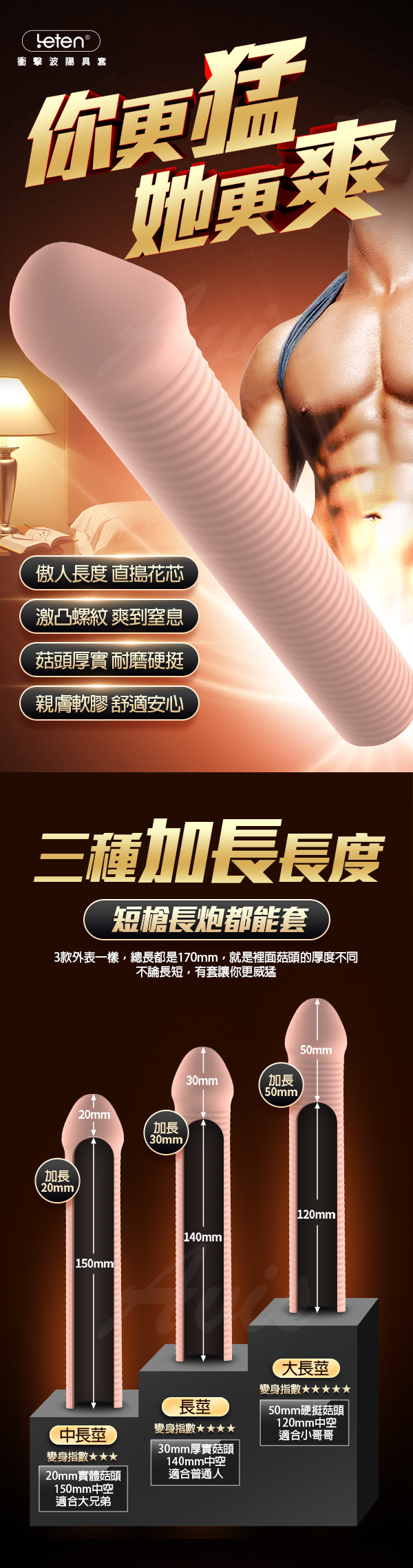 .主商品:LETEN 衝擊波 加長陽具套 中款
