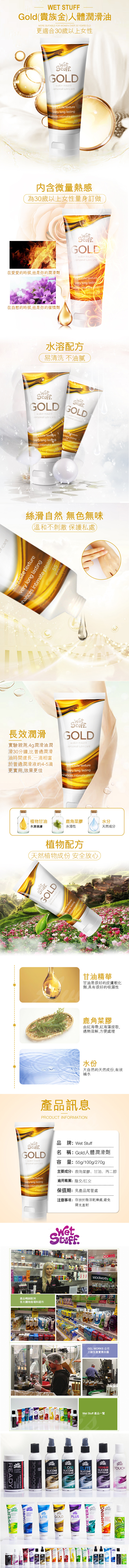 品名:澳洲Wet Stuff GOLD 貴族金 貴婦級熟女專用 人體水溶性潤滑液 100g
