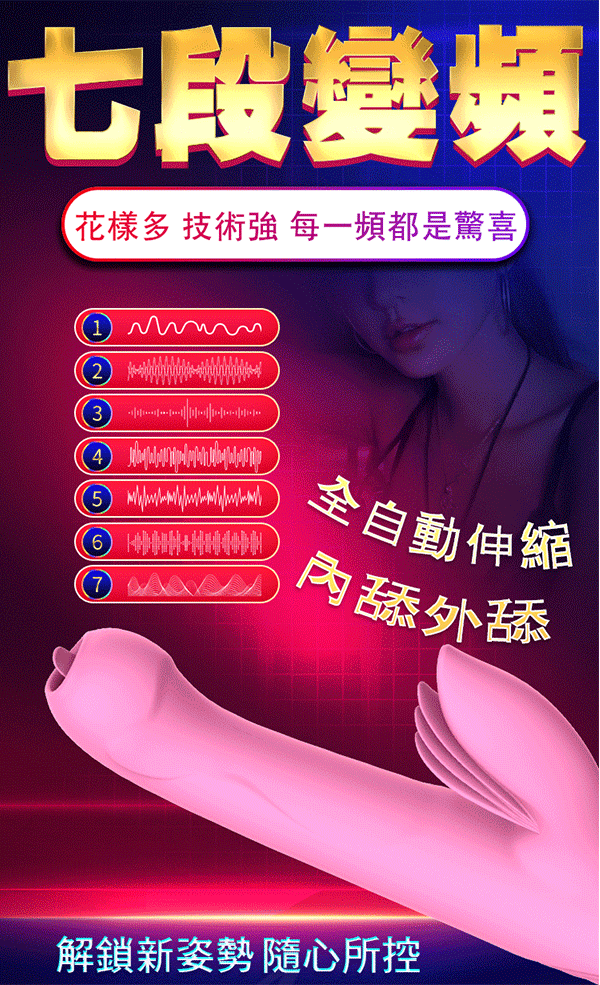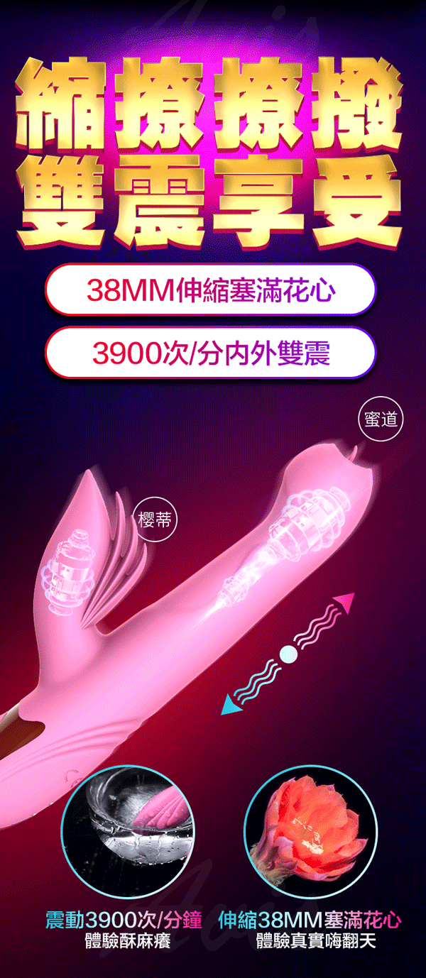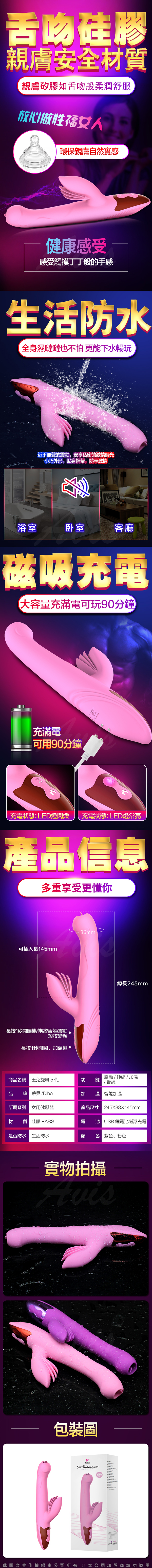 .主商品:Dibe-玉兔旋風5代 7頻伸縮吸吮智能加溫震動按摩棒-粉