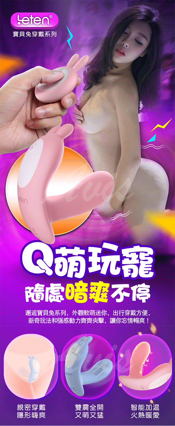 .商品內容:Q萌玩寵 寶貝兔系列 雙震+溫控 隱形穿戴 無線遙控跳蛋