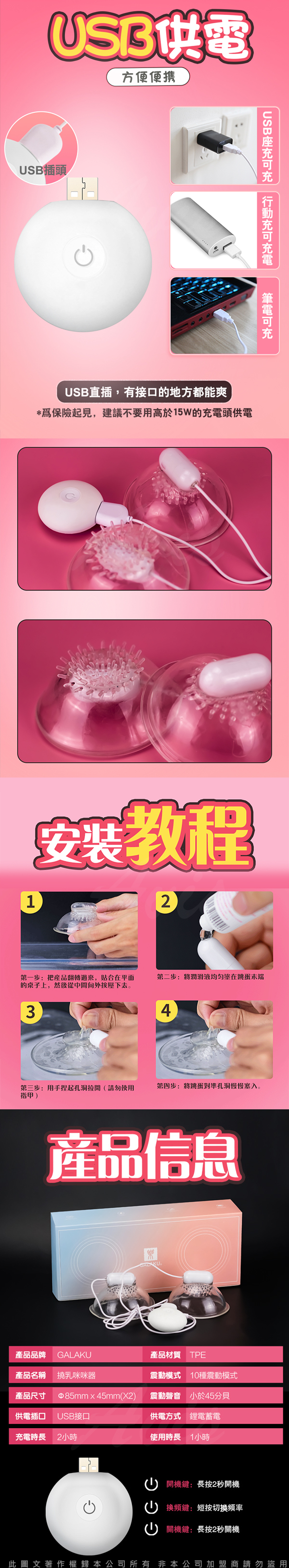 .商品內容:GALAKU 撓乳吸吮 6段變頻靜音乳房按摩器