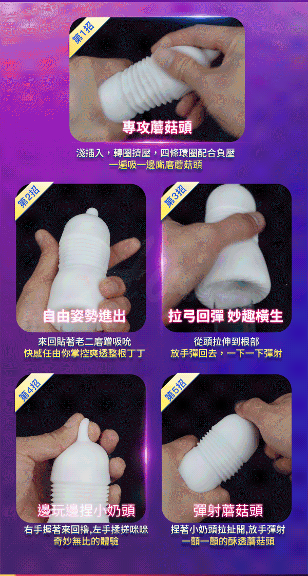 運用幻覺空氣動力構造,推動高潮的進步,給你非同一般的享受爽到欲拔不能~擁有三段負壓真空構造形成強力真空及厚重真實的包裹著老二感增加摩擦感猶如迷失在幻境通道般。採用虛擬膚質材質,柔軟Q彈享受肌膚舒適快感更加銷魂真實練就不倒金剛槍。