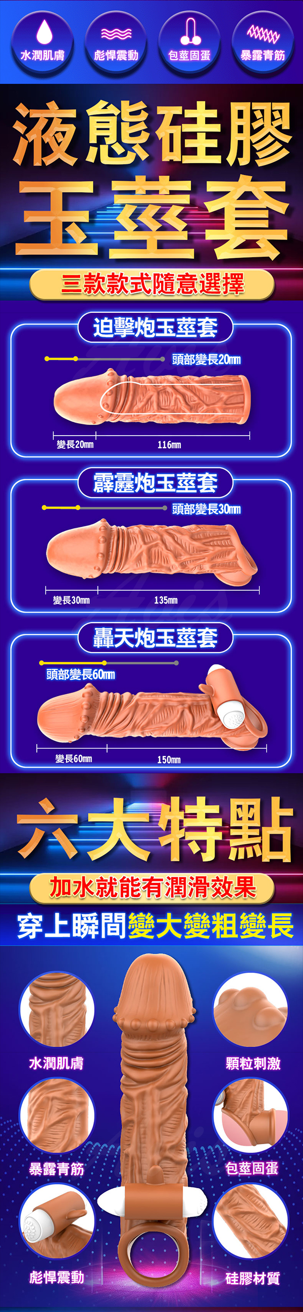 無需潤滑液的液態硅膠套,加水就潤滑,更貼合私處肌膚