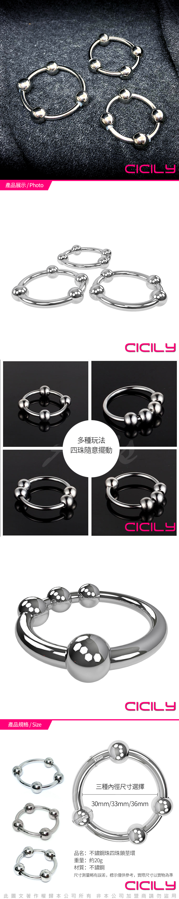 虐戀精品CICILY 金屬 四珠鎖精環 陽具陰莖環 33mm