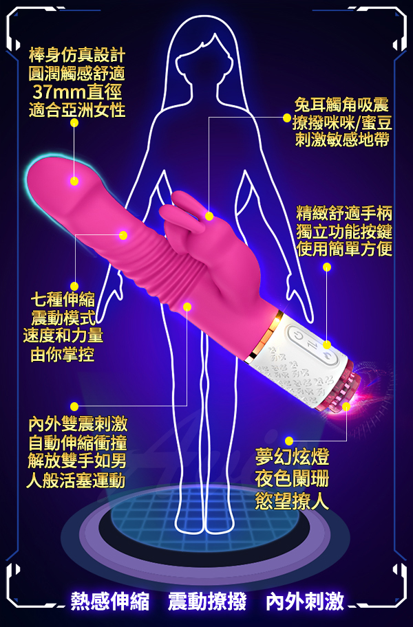 .商品名稱:Dibe-玉兔10代 七頻伸縮震動+吸吮 智能加溫 雙享激情按摩棒