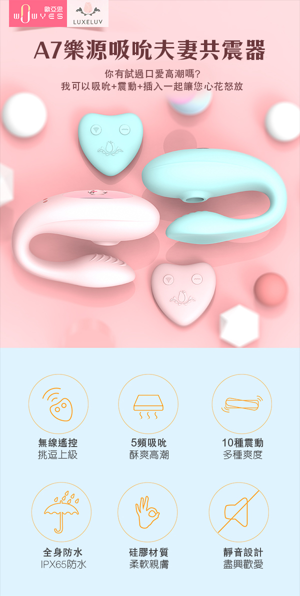 品名:WOWYES A7樂源 5種吸吮+10段變頻雙重高潮矽膠跳蛋-粉