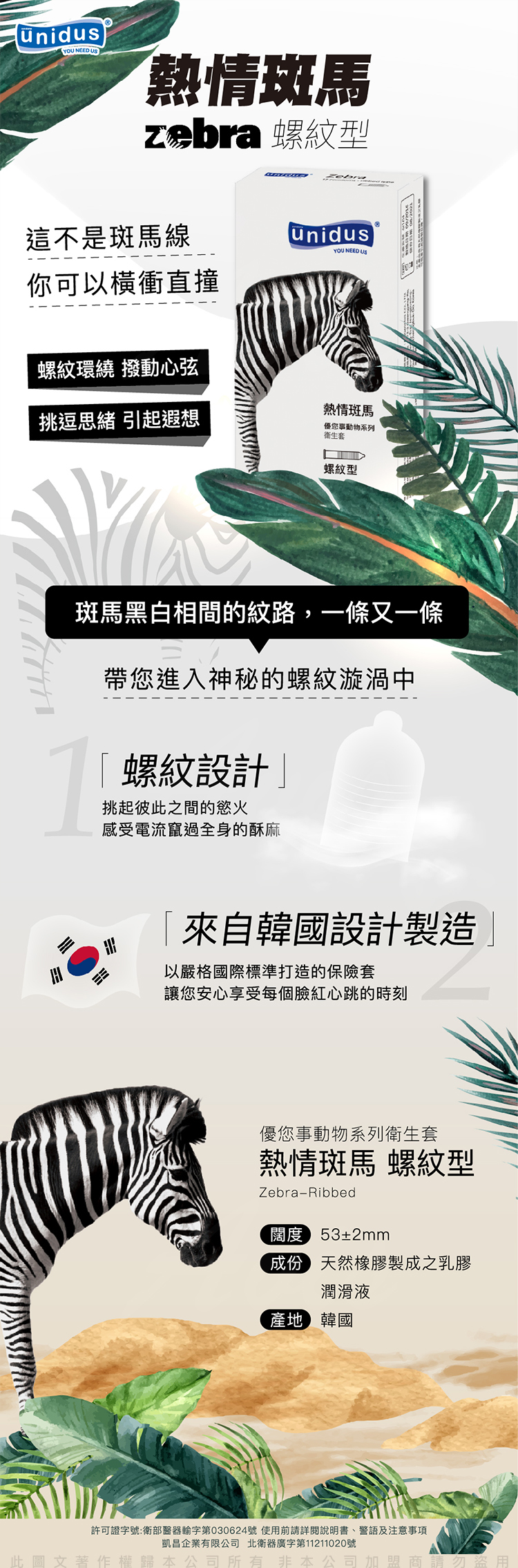 unidus優您事 動物系列保險套-熱情斑馬-螺紋型 12入