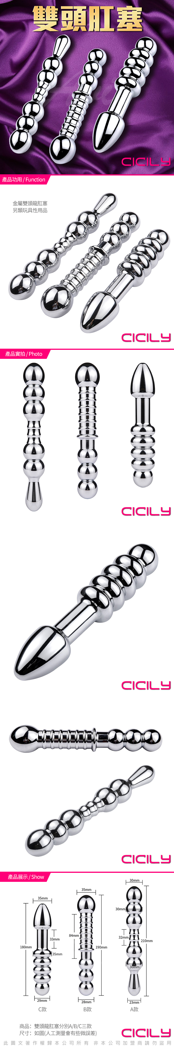 .主商品:CICILY 雙頭 金屬 拉珠後庭按摩棒 B款