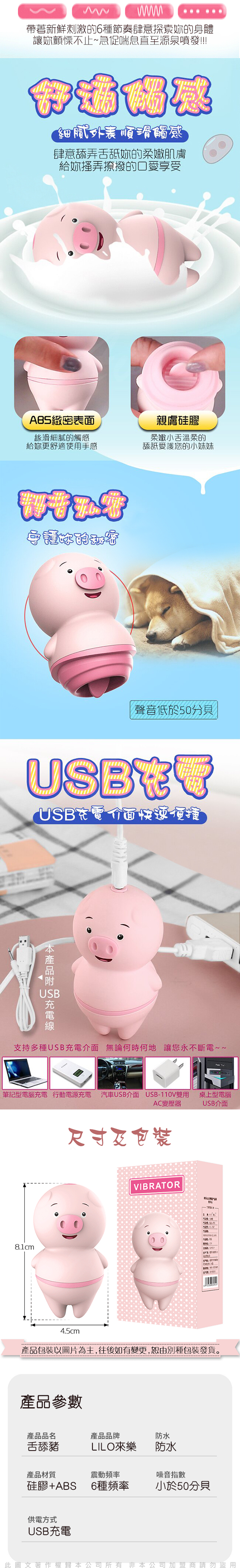 品名:LILO-萌寵豬 6頻 舌舔按摩器