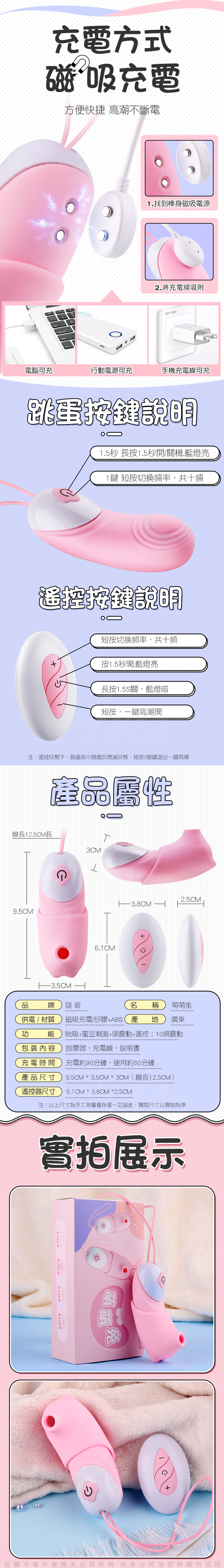 品名:萌萌兔 10段變頻蜜豆吮吸 無線遙控震動跳蛋-(附吸吮頭套)