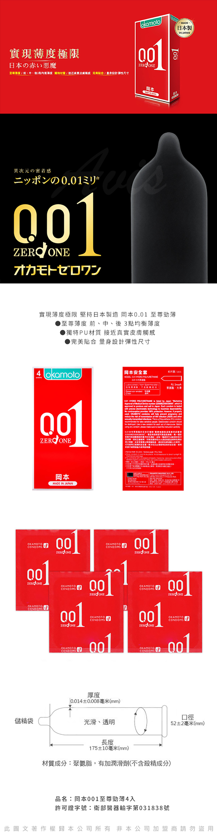 品名:"岡本" 0.01 4片裝