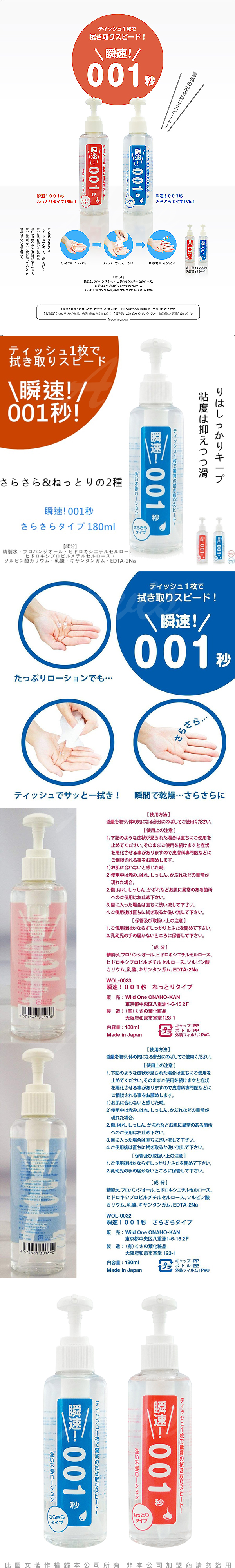 .主商品:日本Wild One 瞬速 001秒 免清洗型潤滑液 180ml 自然柔和(藍色)