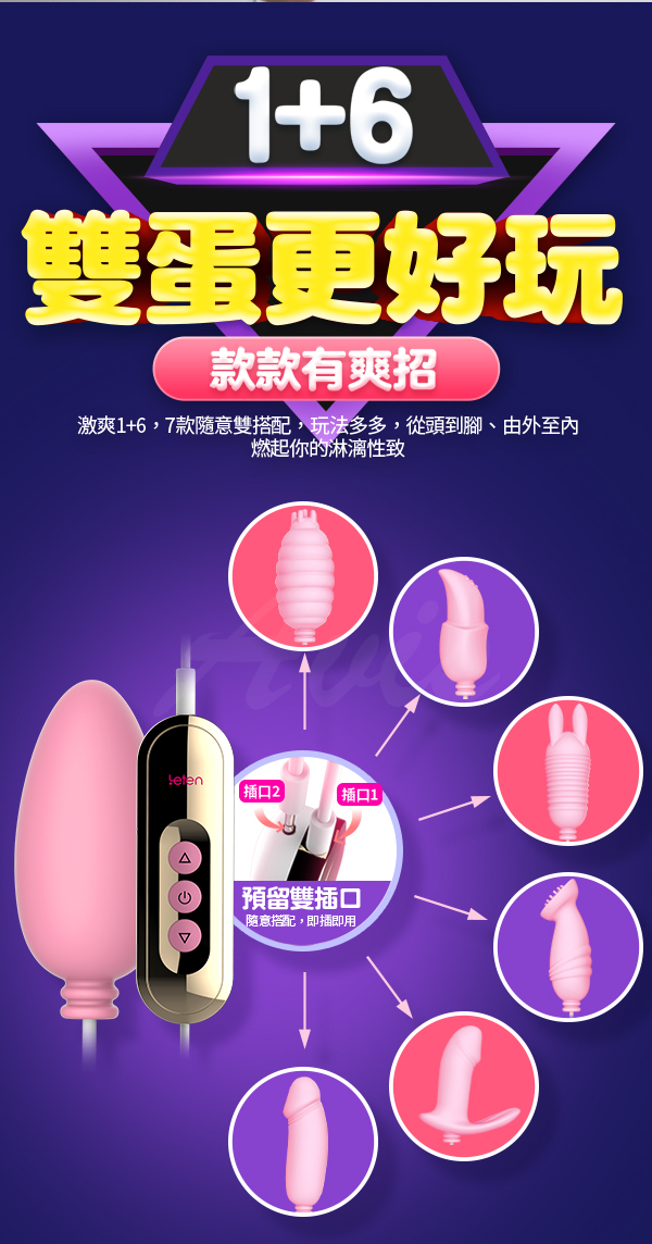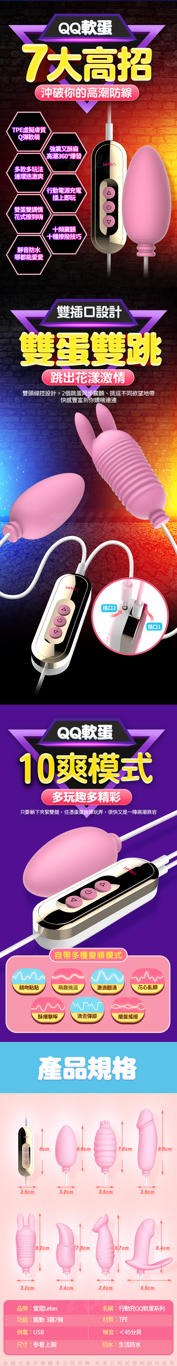 .主商品:Leten-Q軟蛋 USB直充供電隨插即用雙跳蛋-蟲蟲款