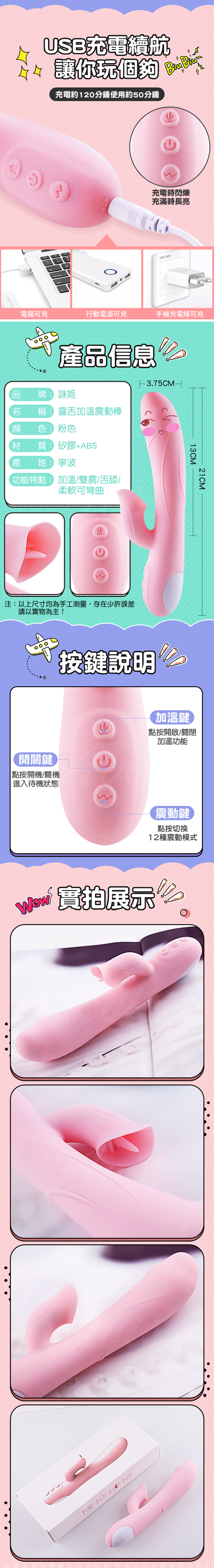 .商品名稱:靈舌 Q彈柔軟震動加溫矽膠按摩棒