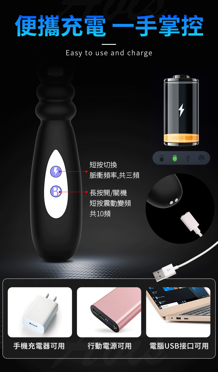 商品名稱:嘿黑精靈 拉珠振動按摩棒 脈衝電擊
