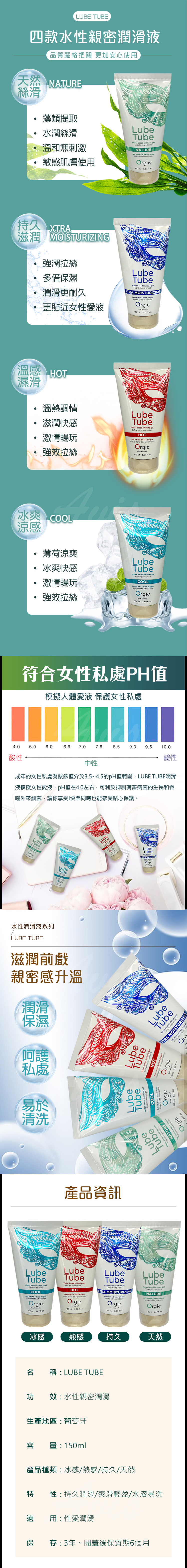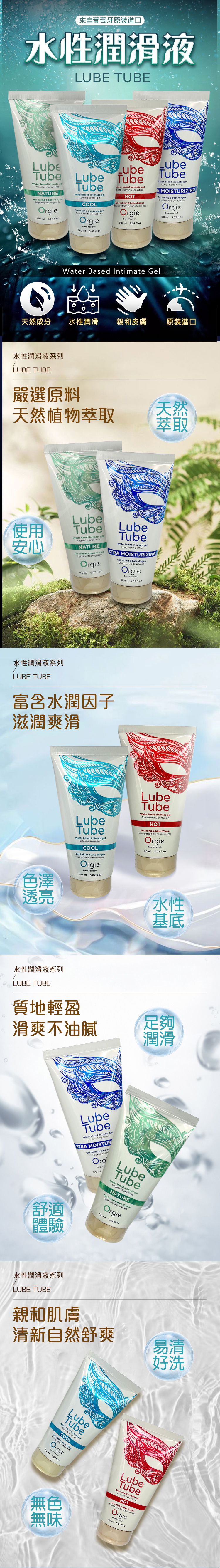 葡萄牙Orgie-LUBE TUBE NATURE 天然植萃潤滑 水性潤滑液 150ml