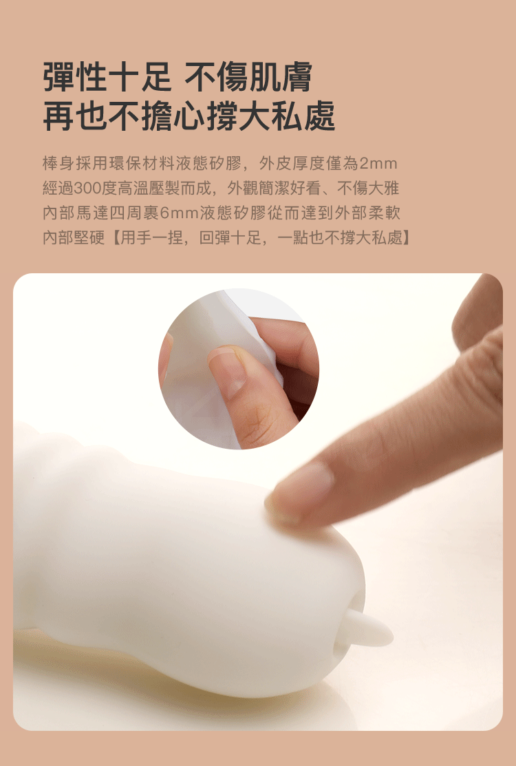 棒身採用環保材料液態矽膠,外皮厚度僅為2mm