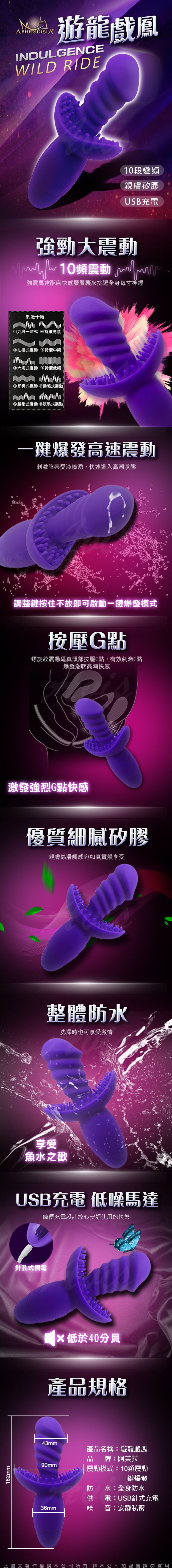 產品名稱:APHRODISIA-遊龍戲鳳 10段變頻防水情趣按摩棒 充電款-紫色