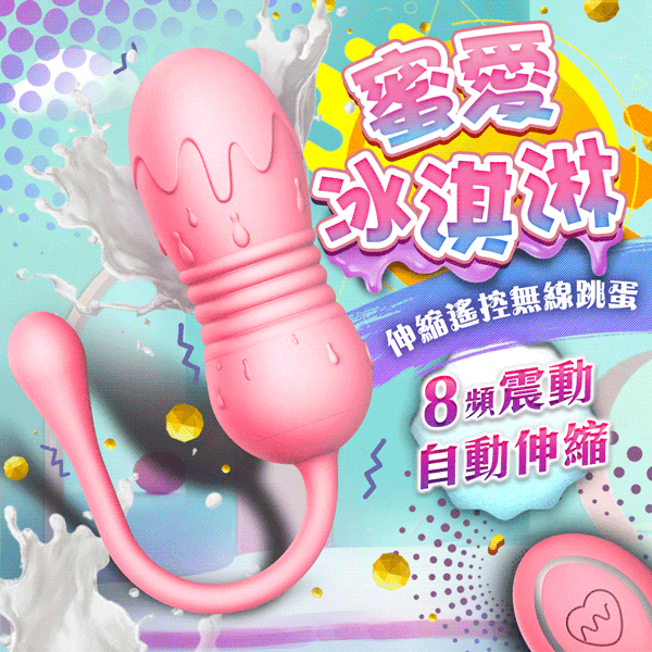 蜜愛冰淇淋無線遙控跳蛋擁有8段伸縮變頻輕鬆自邸敏感部位,刺激內外同時夾擊一同爽。無線遙控讓您一鍵在手,即使在體內也可達遙控,從此她的激情逃不出你的掌心。震動同時還全自動伸縮動力強勁,一次強有力的撞擊勝過多次慢吞吞的摩擦。此款輕鬆好入體,比手指略大一些入體毫無壓力,不撐大仙女們的嬌嫩蜜穴喔~~