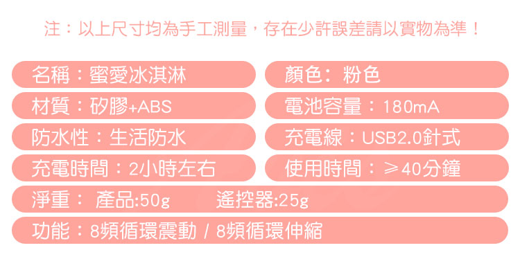 產品名稱:LIBO-蜜愛冰淇淋-8段全自動伸縮變頻無線遙控跳蛋