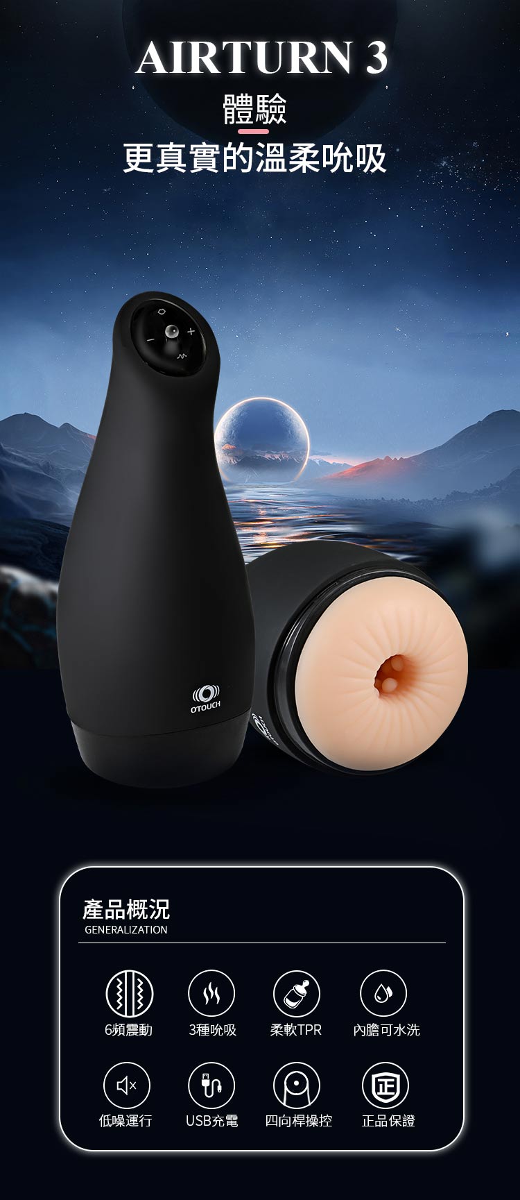 產品名稱:OTOUCH AIRTURN3 艾吞3 6X3頻 震動模式可拆式電動飛機杯 後庭款