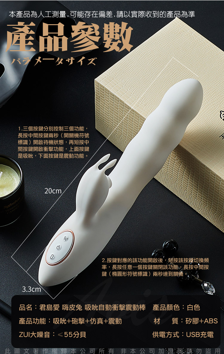品名:君島愛-嗨皮兔 吸吮自動衝擊震動棒