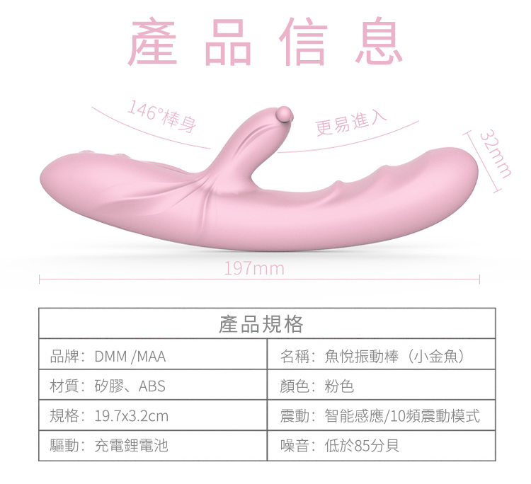 名稱:DMM-魚悅 10段變頻 智能感應加溫軟彈矽膠按摩棒