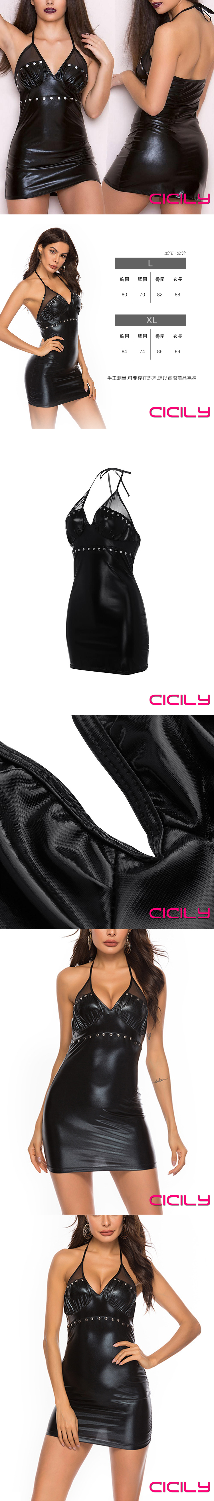 .主商品:CICILY 皮革鉚釘吊帶裙 漆皮膠衣 黑 L