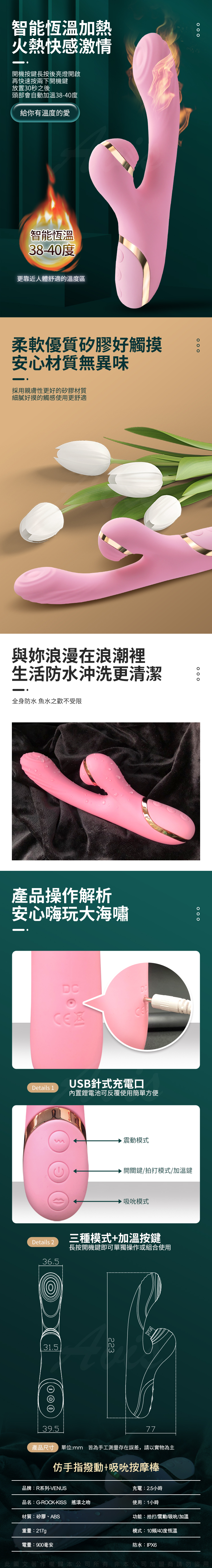功能:拍打震動吸吮/加溫