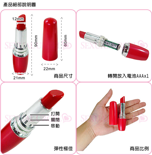 精緻名貴口紅隱藏著一個強力震動器,你能識破這個秘密嗎?攜帶方便,超猛震盪可強烈刺激陰部,深獲歐美名媛喜愛,新婚旅遊野戰都是必不可少的。
