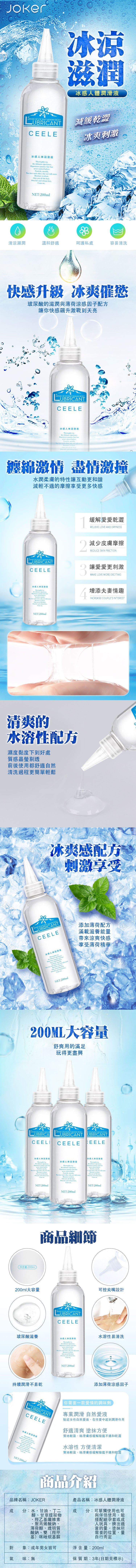 產品名稱:JOKER-冰感 尖嘴人體潤滑液 200ml