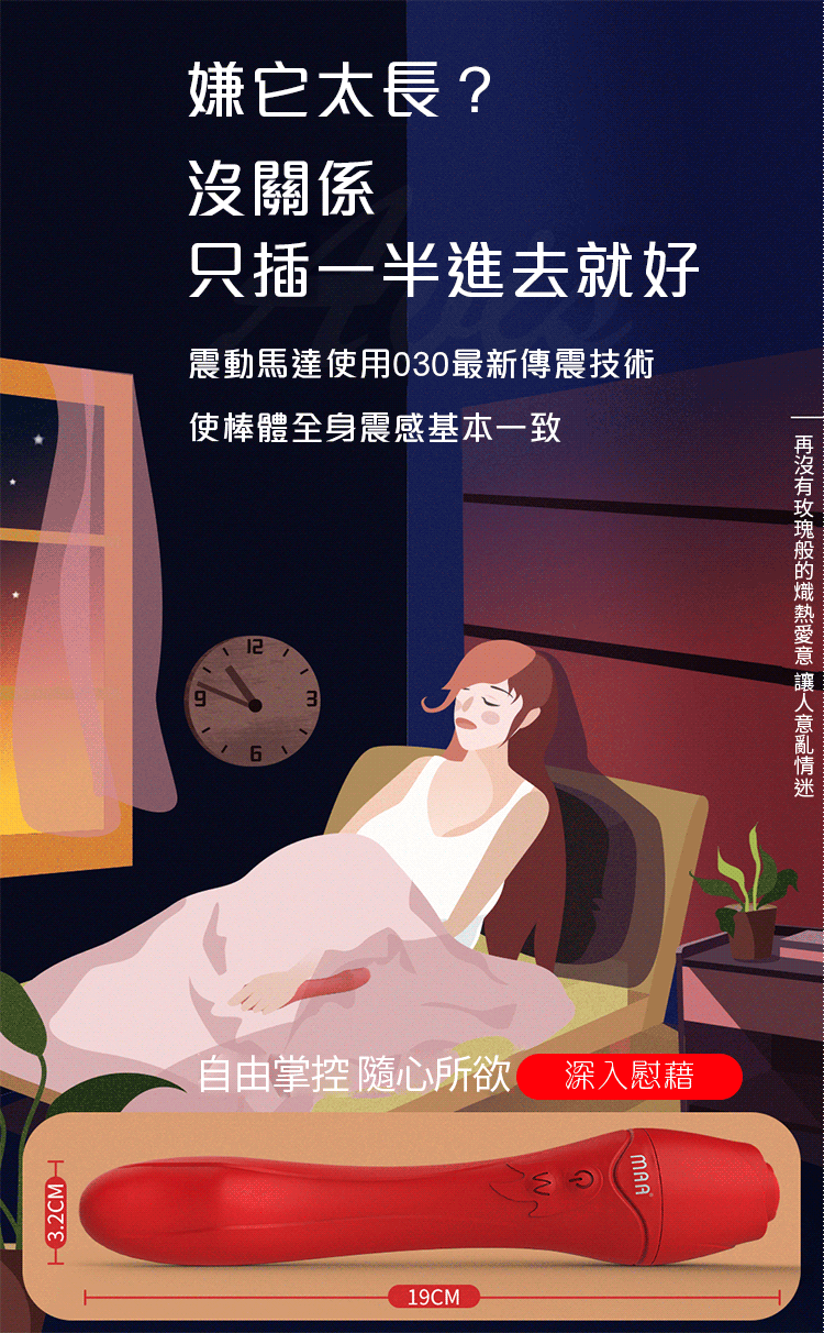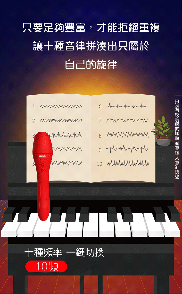 產品名稱:DMM-玫瑰棒 10段變頻 磁震動力加溫軟彈矽膠按摩棒