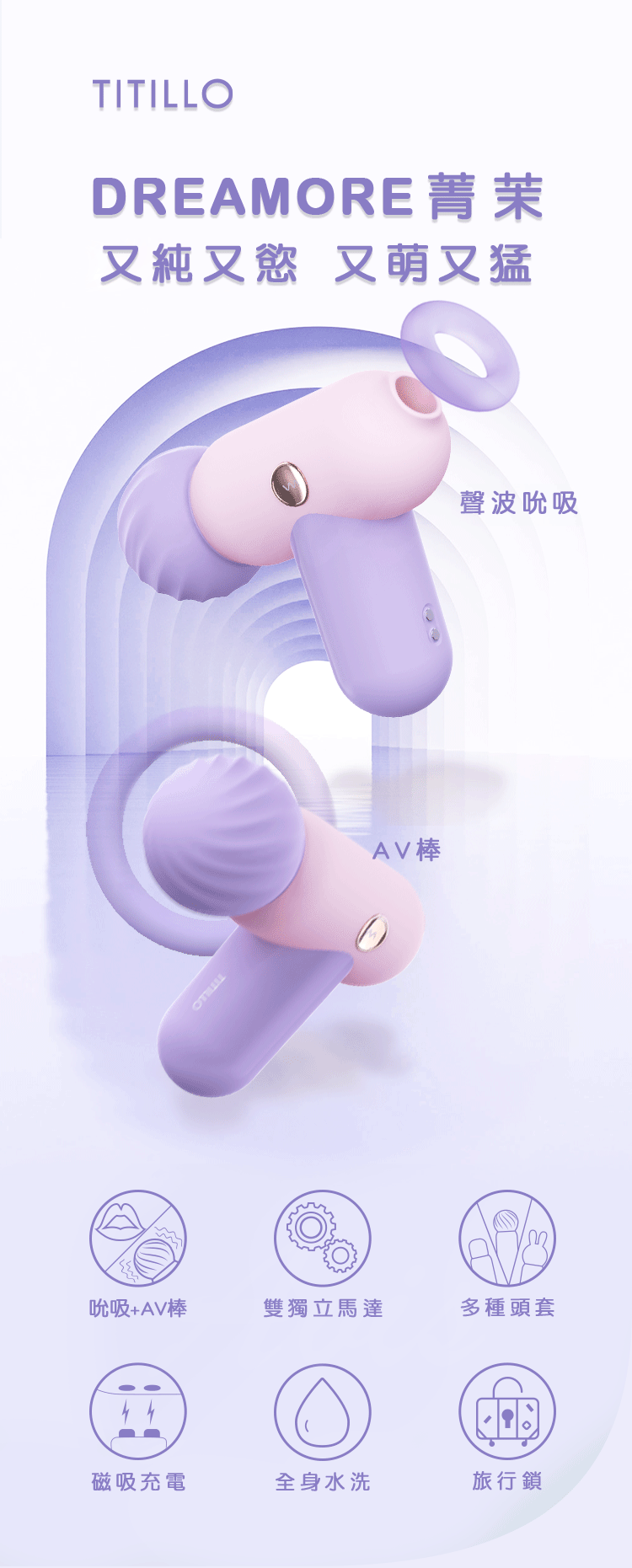 TITILLO|菁茉 吮吸+震動|雙頭按摩棒 紫/粉