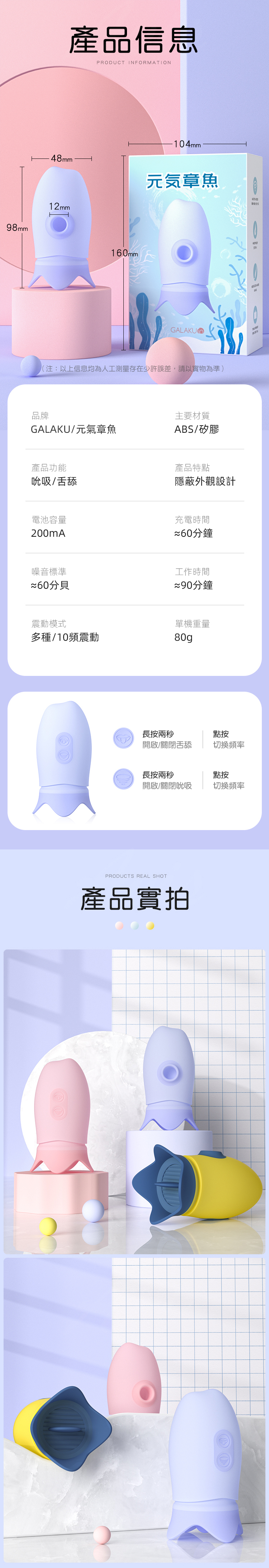 品名:GALAKU|元氣章魚|舌舔脈衝吮吸跳蛋 心動版