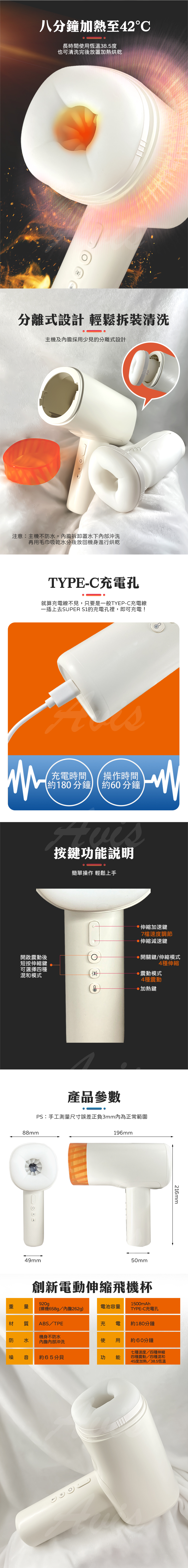 品名:Super S1|創新電動伸縮飛機杯|首創烘乾功能