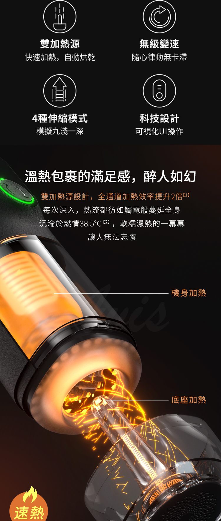 雙加熱源設計(機身加熱+底座加熱),全通道加熱效率提升2倍