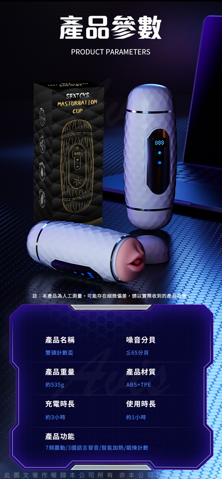 產品名稱:雙頭計數杯|加溫發音鍛煉|男用飛機杯