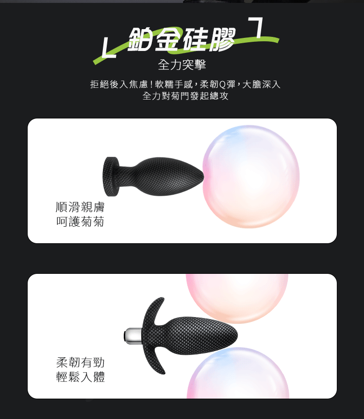 七大人體工學:挑戰極限,頭部設計成錐形,流線順暢,完美貼合菊菊。探索更深入,實現您的 '無射' 體驗。尖端設計倍護菊菊,頭部錐形入體順滑,中端提高感受,中端圓潤體感飽滿。底座設計防止過深入體內,並具有防滑功能,確保您的安全可靠。