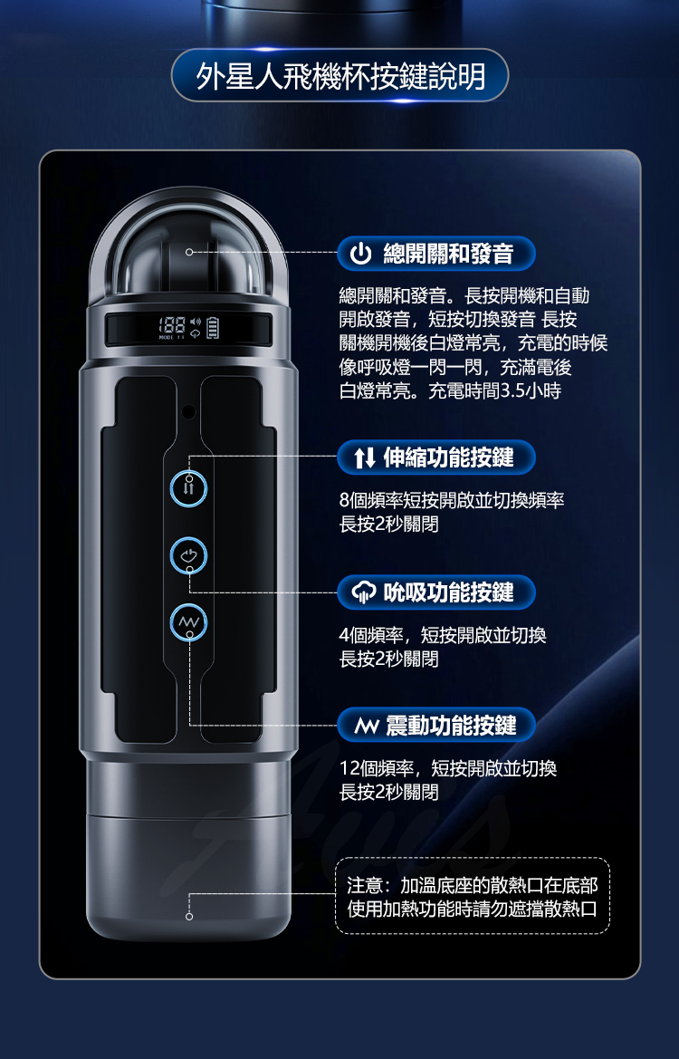 功能特點: 伸縮,吮吸,震動,發音,加溫