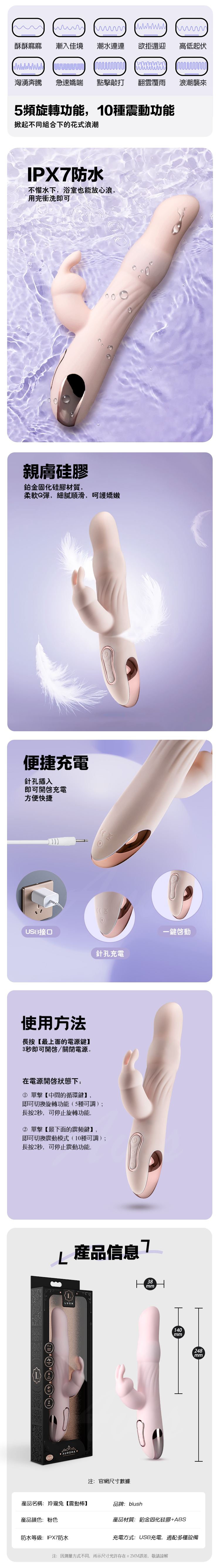 產品名稱:Blush|Aurora 玲瓏兔|內外雙震多功能棒
