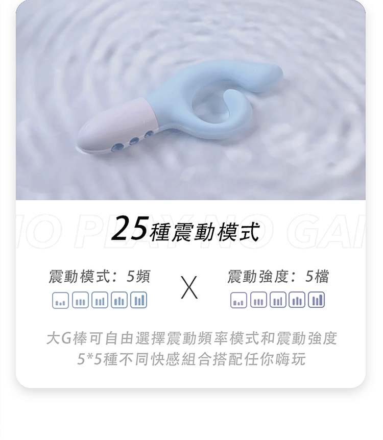 25種震動模式:包含5種頻率和5種強度的組合,共計25種不同的震動模式,以滿足不同的需求和偏好。
