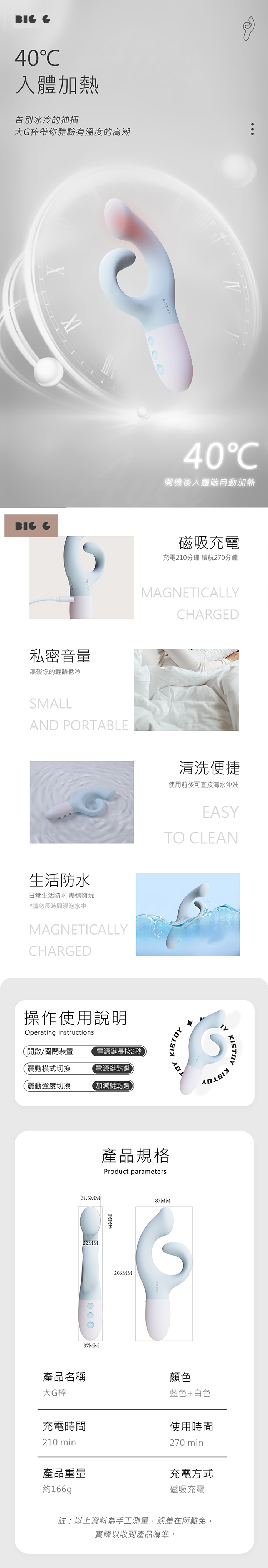 自動加熱功能:開機後自動加熱至40°C,提供更為舒適和逼真的體驗。