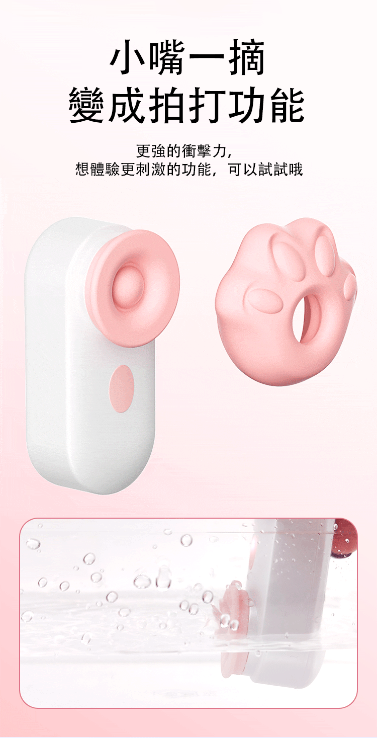 - 靈活設計,小嘴一摘,瞬間變成拍打功能,帶來更強的衝擊力。