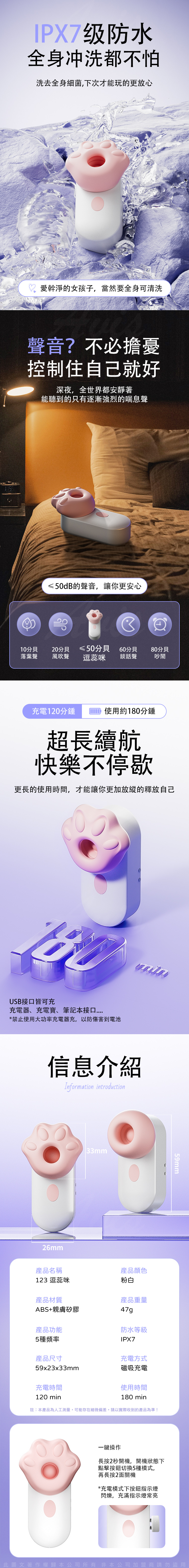 產品材質:ABS+親膚矽膠