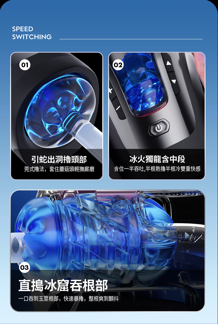 3檔速度調節*:依據您的喜好自由調整速度,從溫柔的慢速到極致的高速,隨心所欲,滿足不同時刻的渴望。